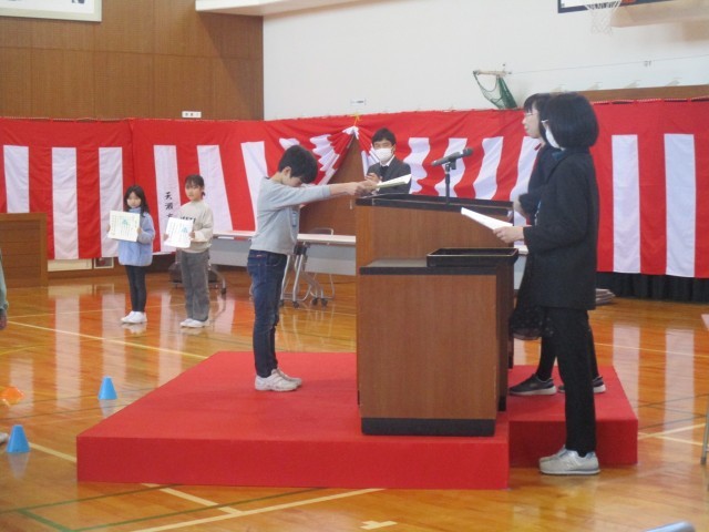県の書き初め大会でがんばりました。賞状をもらってうれしそうでした。