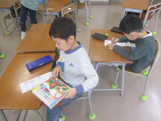 日直札をていねいに仕上げたい!と時間をかけて取り組む子や、みんなでなべなべそこぬけをする子など、思い思いに過ごしていました。