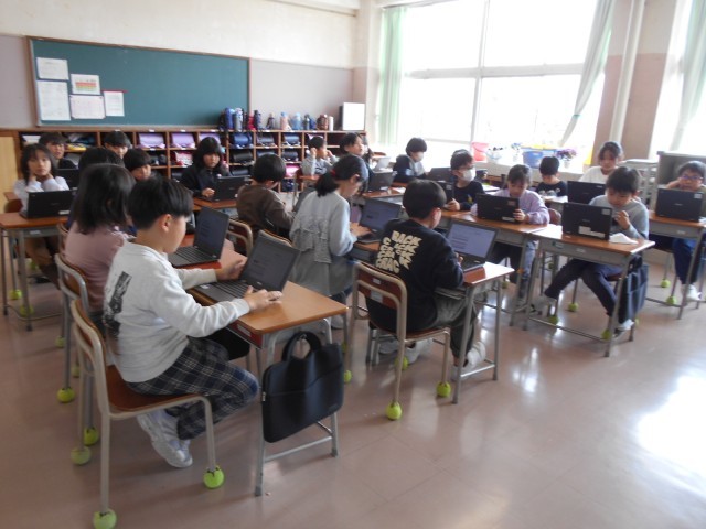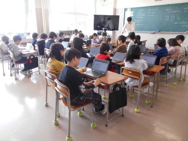4年生はスプレッドシートで入力しあって共同編集して、自主活動について考えていました。