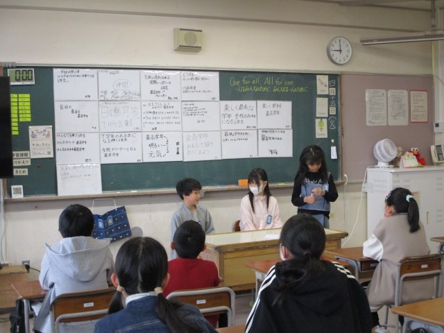 6年1組の学級目標をみんなで考えました。小学校最後の学級目標のため、時間をかけて一生懸命作り上げました。