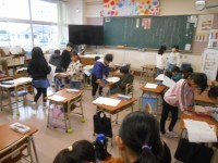 学校から歩いて、ホタルイカ見学に行ってきました。ホタルイカについての話を聞いたり、実際に触ったりしました。