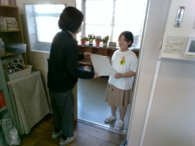 さっそく朝から4年生が画用紙をもらいに来てくれました。