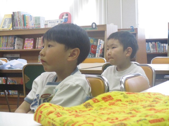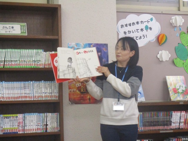 図書館オリエンテーションで、本を2冊読み聞かせしていただきました。