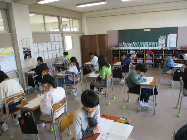 今日は全国学力・学習状況調査がありました。最後まで粘り強く問題に取り組んでいました。