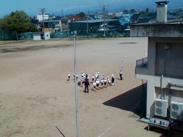 C先生と体育の学習です。体を動かしながら英語にふれた4年生の子供たちです。