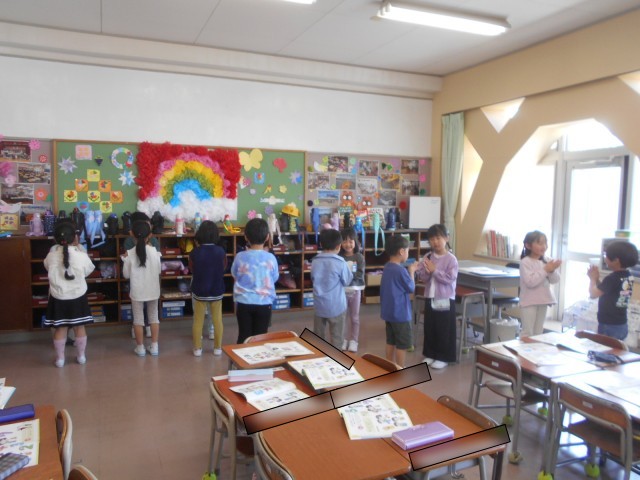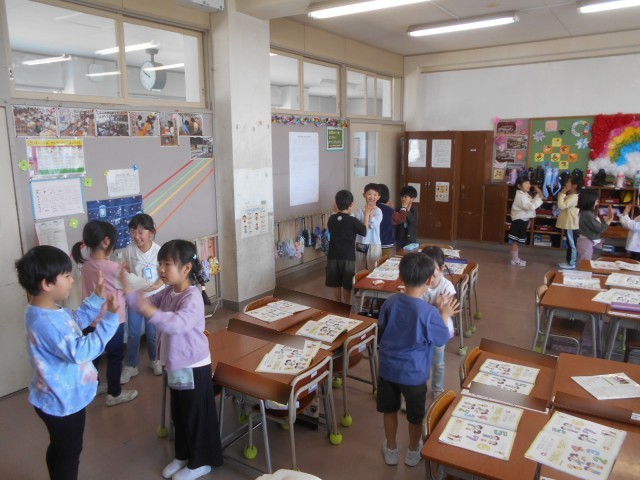 今日の音楽の時間では、歌に合わせて友達と一緒に踊る活動を行いました。班の友達や色々な友達とセブンステップを踊りました。後半は、チェッチェコリの踊りに挑戦しました。