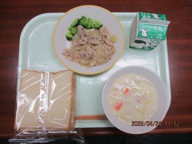 ・ポークソテー ・ゆでブロッコリー ・クリームシチュー