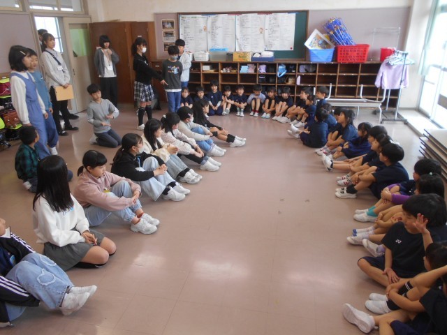 今日の2時間目に6年生さんと入場の練習と、集会の動きの確認を行いました。また、ファミリー班ごとに顔合わせを行い、自己紹介を行いました。6年生の姿から1年生は、どのように行動すればよいか学んでいました。