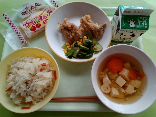 ・ちらし寿司 ・牛乳 ・鶏肉のから揚げ
