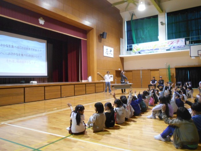 今日は、大屋さんのお兄さんと漁師の方たちから富山湾のことやホタルイカについて教えて頂きました。実際に教えてもらい、給食ではホタルイカの唐揚げを食べました。