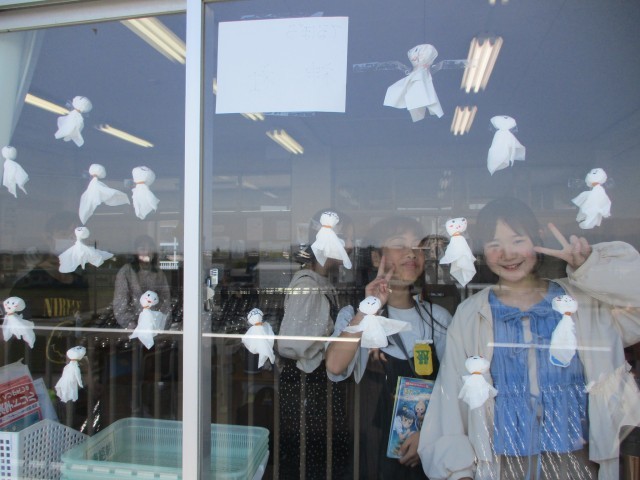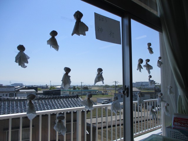 みんなで楽しく浜黒崎まで行きたい気持ちがいっぱいの6年生は、たくさんのてるてるぼうずをつくっていました。