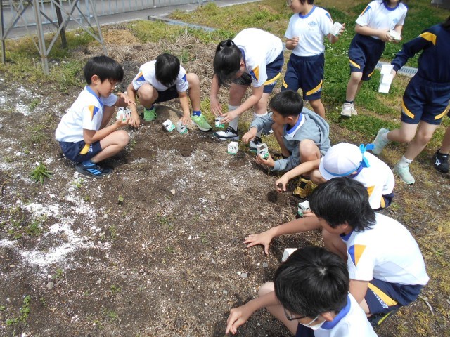 土を入れて、種をまきました。立派に育つように、水やりを頑張ります!