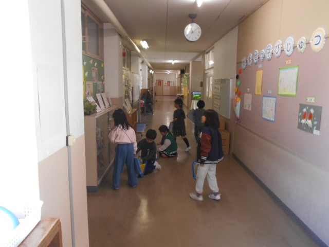 校舎内で自分が行きたい場所を選んで、探検しています。水橋西部小学校にある、もの・ひと・ことをたくさん見つけて集めています。