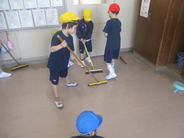 教室ではほうきで全体をきれいにしたり、自分の足下の汚れが気になってぞうきんで拭いたりと考えながら掃除に取り組んでいました。