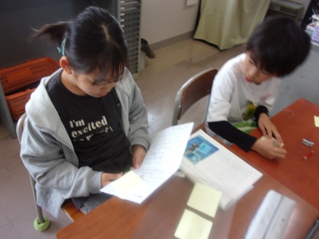 「ここが面白い!」「自分には思いつかなかった物語だな!」などと感想をいいながら、楽しく友達が作ったお話をよんでいました。