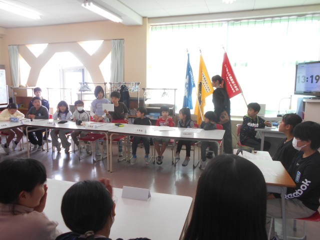 代表委員会で学級代表の2人がクラスの意見を伝えてきました。緊張感のある中、大きな声でお話していました。