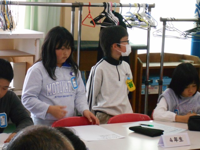 学級代表は、学級で話し合った内容を簡潔にまとめ、他学年に伝えることができました。