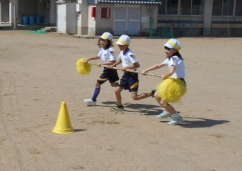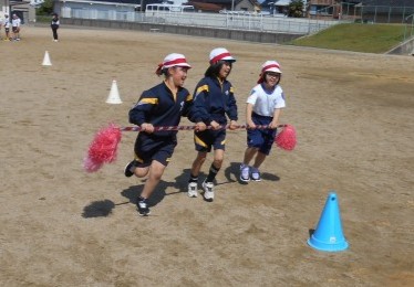 走る順番を考えて、コースを走ってみました。仲間と息を合わせるのが大変で大苦戦でした。