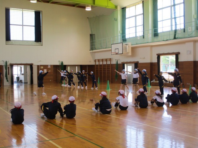 今日は団体競技の練習をしました。さすがは高学年、すぐに流れを頭に入れて動くことができました。