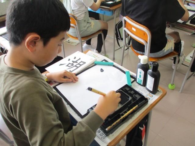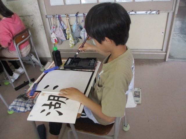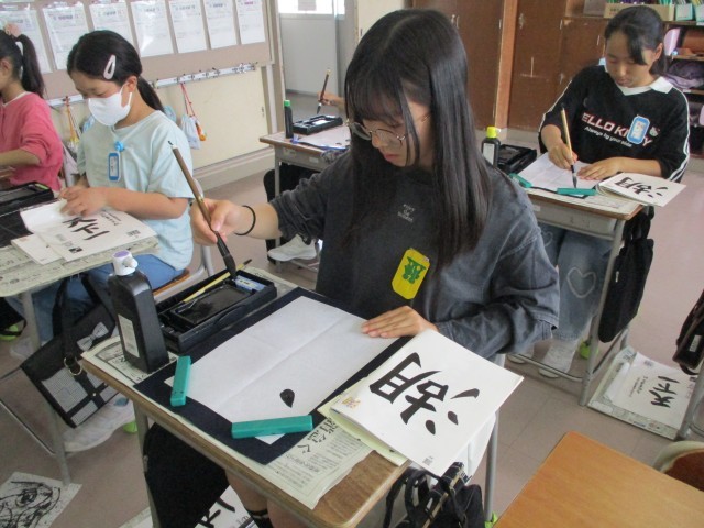心を落ち着かせて一筆一筆に思いを込めて毛筆の練習をしました。