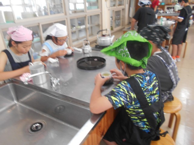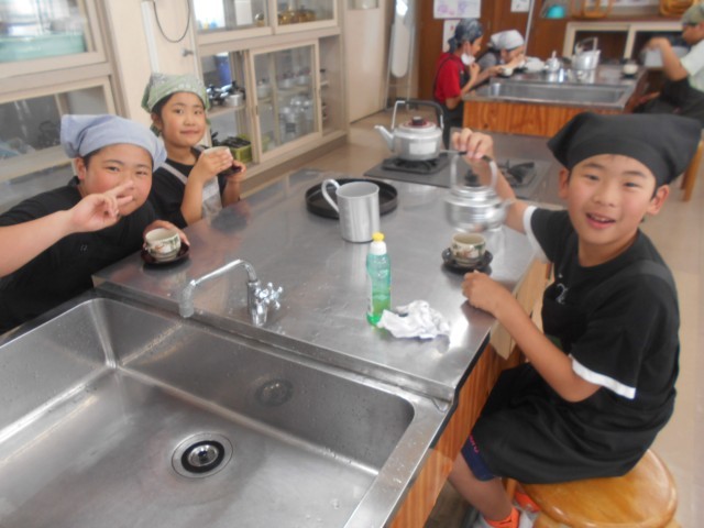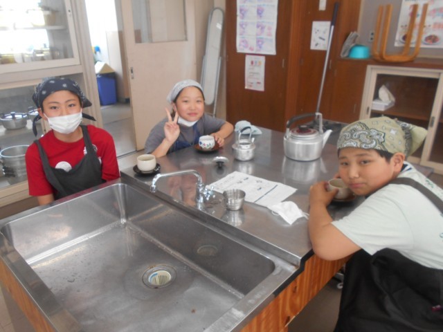 1回目でつくったお茶を飲み、水の量を変えたり、茶葉を量を調節したりして美味しいお茶づくりに取り組みました。