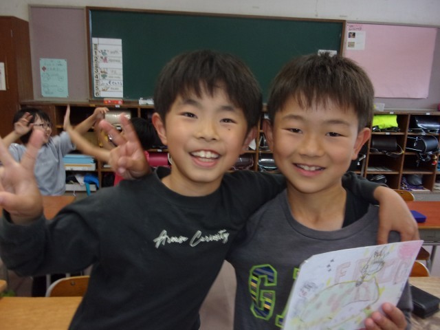 絵をもらった友達もあげた友達もお互いに笑顔で嬉しそうでした。