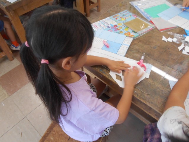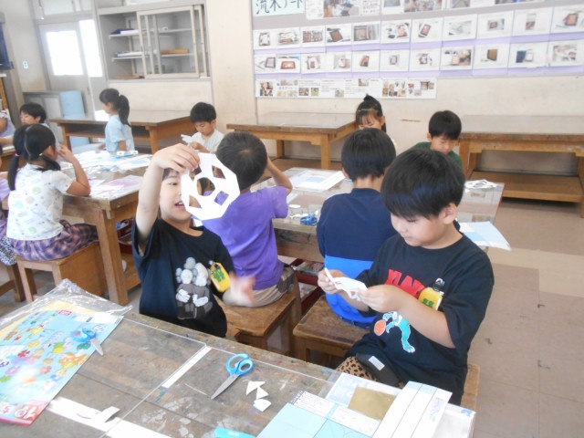 1年生 ちょきちょきかざりをつくったよ