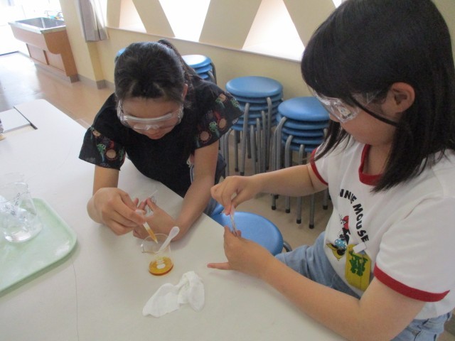 ヨウ素液を使ってだ液のはたらきを調べました。