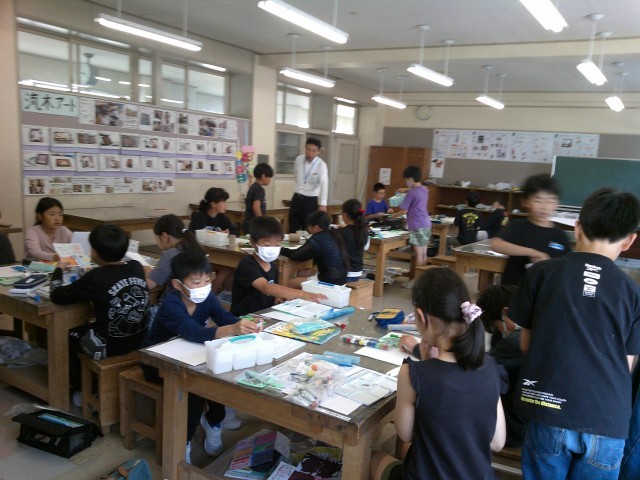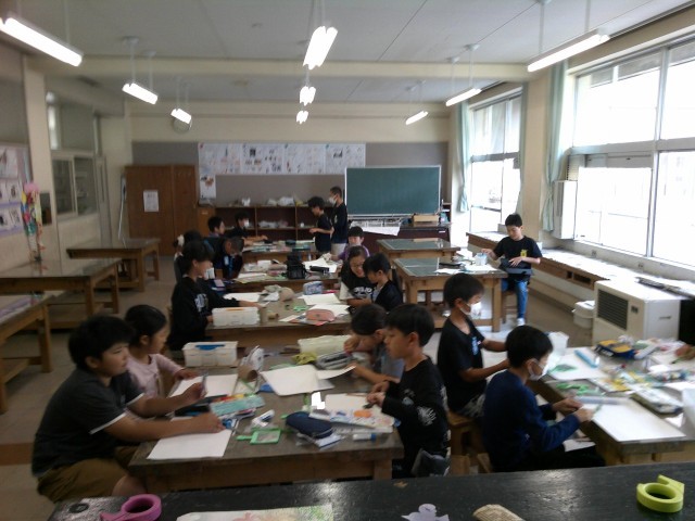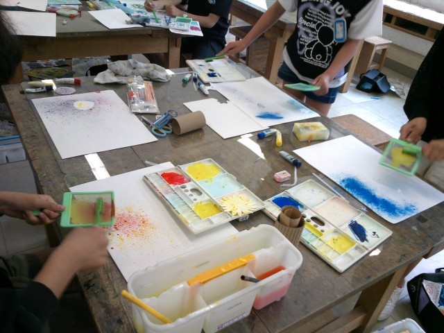 今日の5年生は「心のもよう」の本番をスパッタリングなどを活用して製作しました。