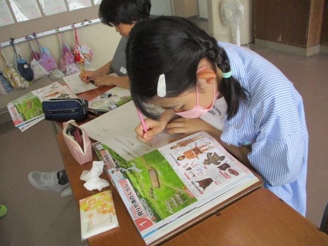 縄文のむらと弥生のむらの生活について調べています。似ているところや違うところを見付けてます。