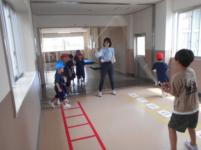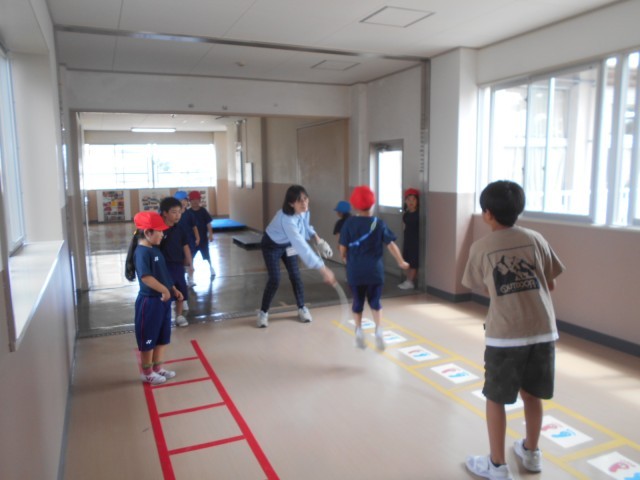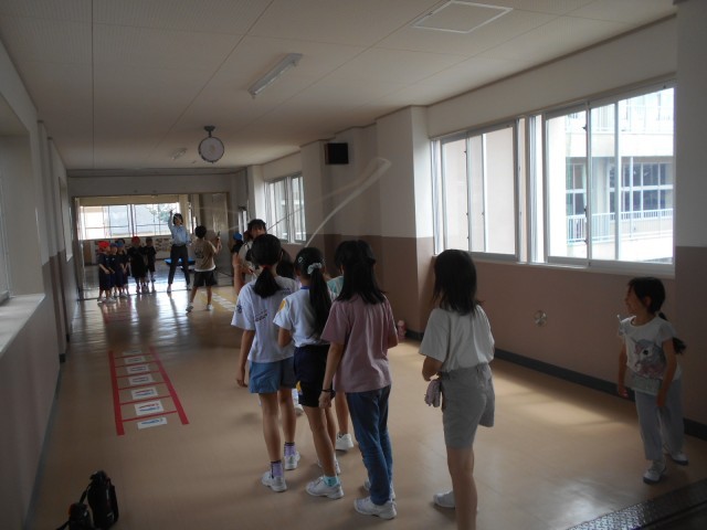 このゆびとまれの大縄大会の企画に1年1組の何人かが参加していました。初めての大縄にも楽しみながら、挑戦していました。