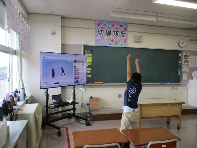 朝のつどいでラジオ体操をしっかりとやろうと、汗をかきながら練習する姿が見られました。