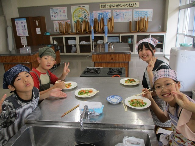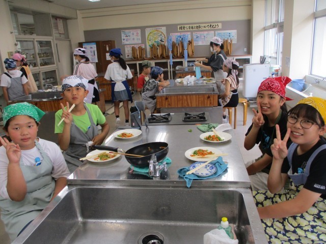 6年生 いろどりいためをつくったよ 公開日 2025/06/12 更新日 2025/06/12 6年生 調理実習でいろどりいためをつくりました。野菜の切り方やフライパンに入れる順番等を考えておいしくつくることができました。 +1