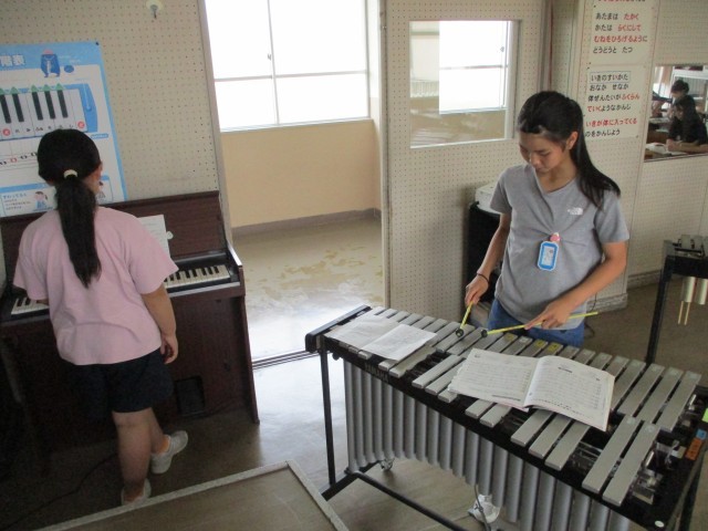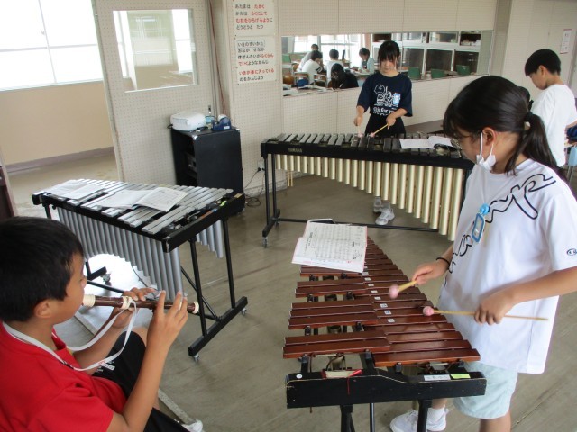 グループに分かれて合奏をします。どの旋律をどんな楽器が担当するとよいか話し合いながら分担をしました。