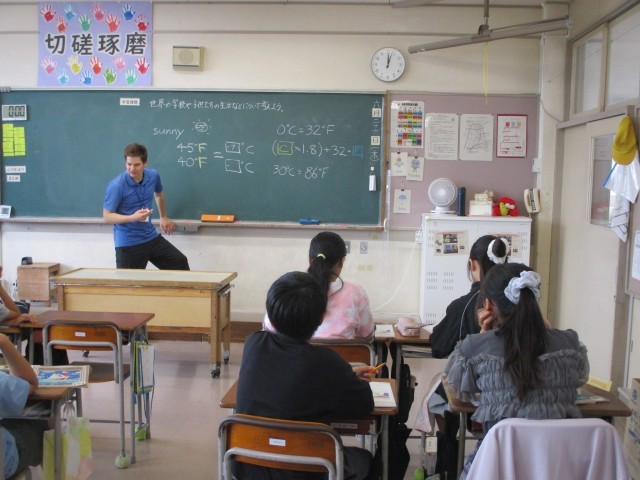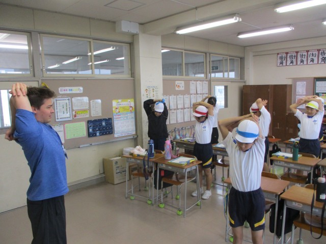 一緒にスポーツテストに向けて準備体操をしたり、外国語の学習で海外と日本での気温の表し方に違いがあることを教えていただいたりしました。