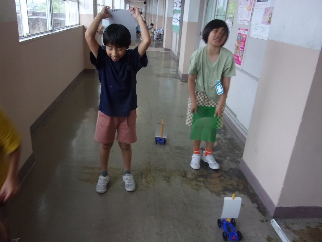 今日は、まず風で車を走らせてみました。