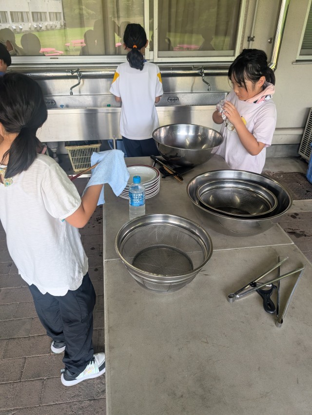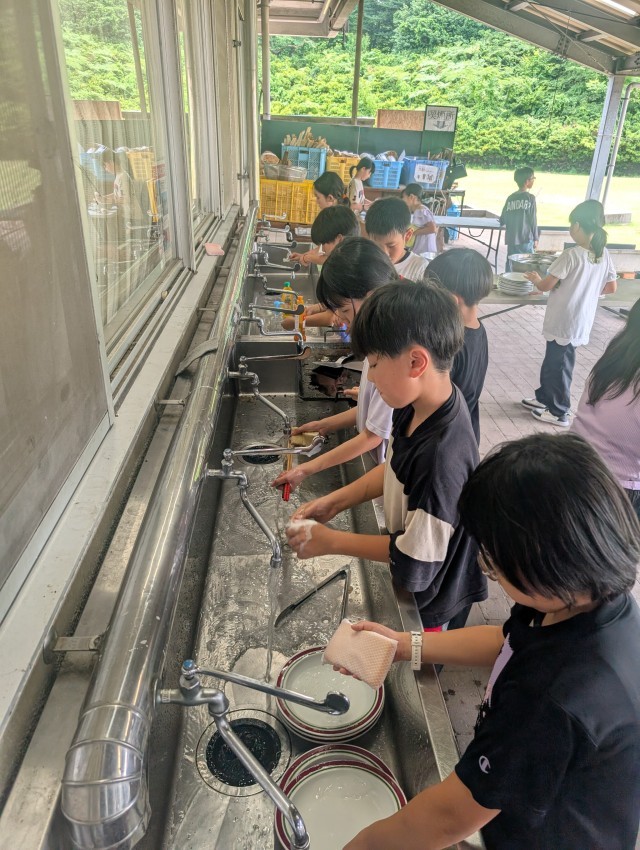 食べた後は、みんなで片付けです。集団生活も慣れてきて、かなり手際よくなってきています。