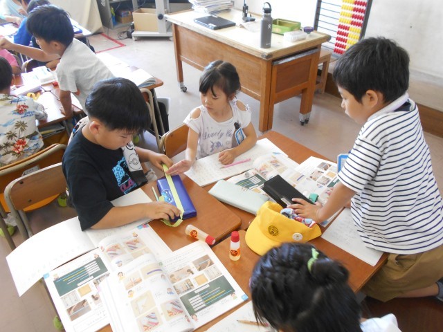 身の回りにある、いろいろなもののながさをテープにうつしとって、長さ比べをしました。
