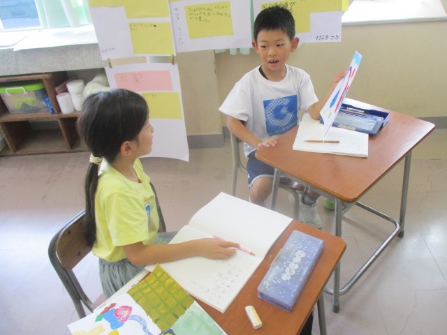 国語「あったらいいな、こんなもの」の学習で、おたがいの考えたものを聞いて、質問し合いました。