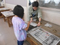 版画を刷りました。 友達を手伝いながら、お互いの作品を見合っていました。