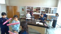 「鉄腕アトム」の器楽合奏発表に向けて練習中。 友達の音をよく聞いて、リズムよく...