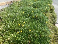 黄色の花が、太陽の光をいっぱい浴びています。あたたかな陽気にトンボも日向ぼっこ...