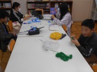 1年生は「はこでつくったよ」を製作しました。算数や造形遊びで活用した箱を最後にのりやテープ、ガムテープで思い思いのものになるように工作していました。