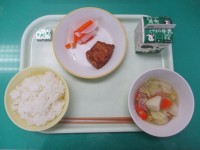 ・ごはん ・牛乳🥛 ・豚肉の香り揚げ・ピクルス ・野菜のスープ煮 ・ポケットチーズ検食、異常なし。ピクルスが歯切れよく爽やかで、豚肉の揚げ物の最高のパートナーでした。