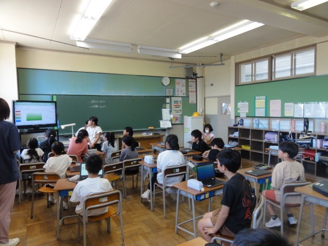3・4年生は、総合的な学習の時間に水橋東部の地域について調べています。1学期に分かったことや、今後もっと知りたいことについて、スライドにまとめて発表しました。