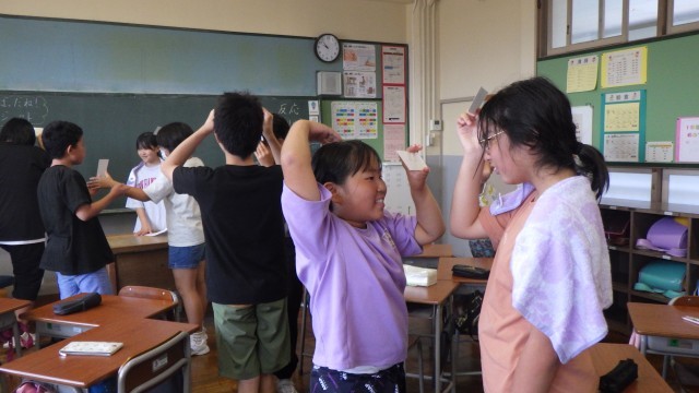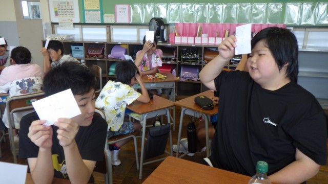 今日のお楽しみ会では、子供たちが企画したさまざまなプロジェクトを楽しみました。これはキーワードゲームを楽しんでいるところです。