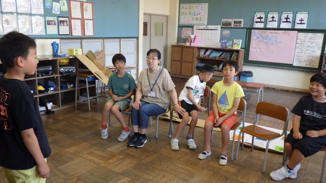 1学期お疲れ様集会を行いました。みんなで考えたゲームをしました。得点を競いながら終始楽しんでいました。