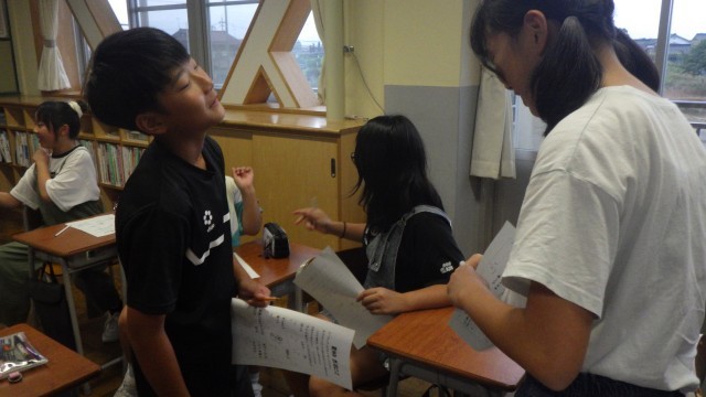 楽しい夏休みを過ごした5・6年生の子供たち。学級活動では、「思い出ビンゴ」を楽しみました。久しぶりの再会に、思い出話に花が咲いていました。