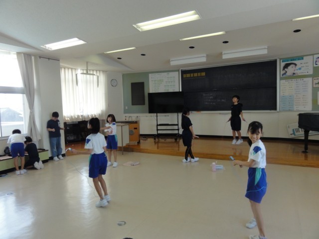 閉校記念なわとび発表会に向けて、縄跳びの練習を継続しています。今日は、体育館がとても暑かったので、熱中症対策で涼しい場所で練習をしました。一人一人が技がしっかりできるように取り組んでいます。