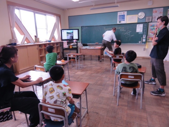 3年生の外国語活動では、ALTの先生から夏休みの思い出について話を聞きました。写真を見て、子供たちは英語での表現に親しみ、知っていることや自分も経験したことについて伝えていました。